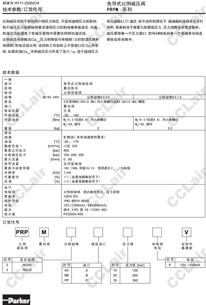 PRPM2AA10K,PRPM2BB10K,PRPM2PP10K,PRPM3AA10K,PRPM3BB10K,PRPM3PP10K,Parker先導(dǎo)式比例減壓閥 |