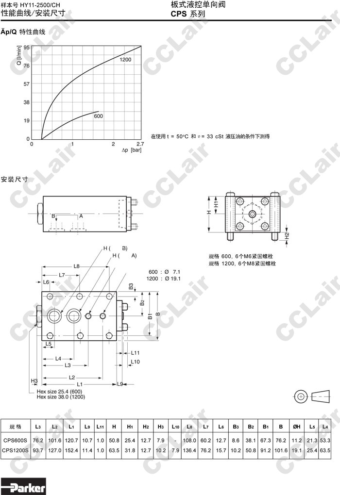 CPS600S5M,CPS600S5V,CPS600S40M,CPS600S40V,CPS1200S5M,CPS1200S5V,CPS1200S40M,CPS1200S40V,Parker板式液控單向