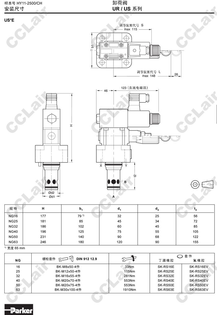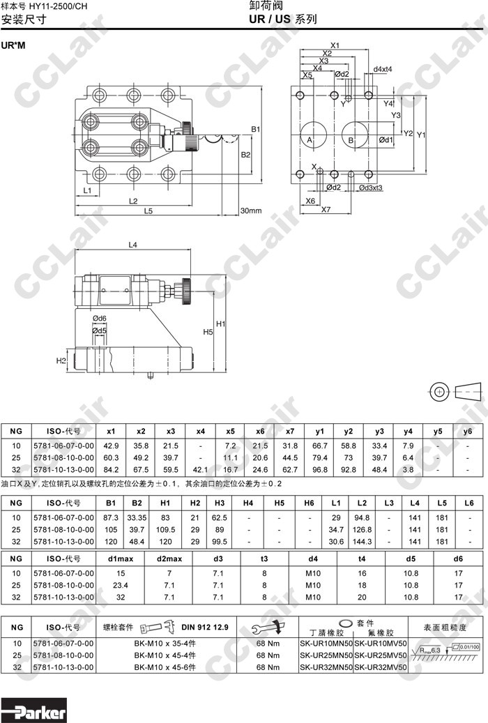 UR10M,UR25M,UR32M,UR16E,UR25E,UR32E,UR40E,UR50E,UR63E,UR10M07L1SN,Parker卸荷閥 |