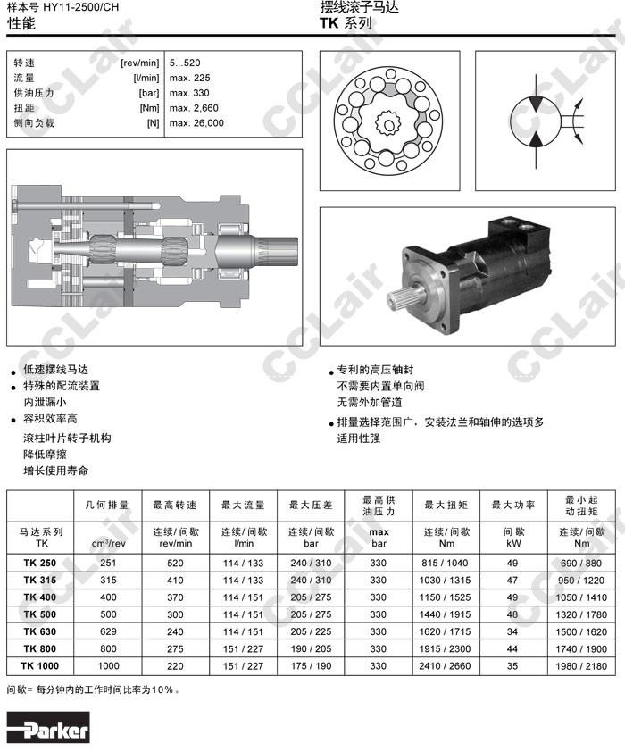 TK0250,TK0315,TK0400,TK0500,TK0630,TK0800,TK1000,TK0250K4630AAAB,Parker擺線滾子馬達(dá)