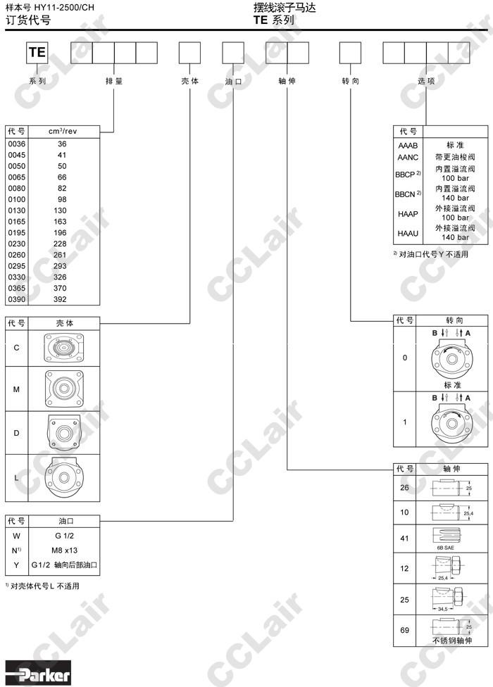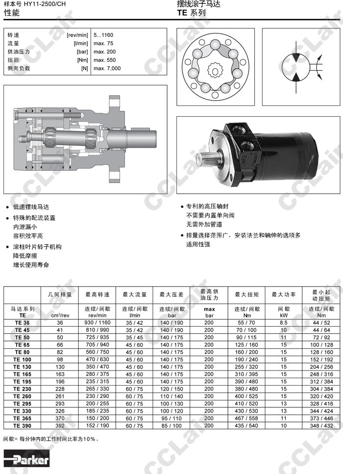 TE0165,TE0195,TE0230,TE0260,TE0295,TE0330,TE0365,TE0390,Parker擺線滾子馬達(dá)