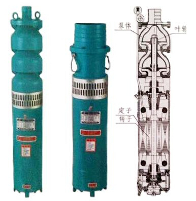 QS型潛水泵由水泵、電機(jī)兩大部分組成,水泵位于電泵上部,為離心式結(jié)構(gòu)。電動(dòng)機(jī)位于電泵下部,為充水式三相異步電動(dòng)機(jī)。充水式電動(dòng)機(jī)定子繞組和鐵心直接浸在水中,冷卻效果好,不產(chǎn)生污染,從而突破了其他電泵工作時(shí)“O"形密封圈,機(jī)械密封件等滲水到電機(jī)腔內(nèi)的弊端,大大提高了電泵的使用效率。