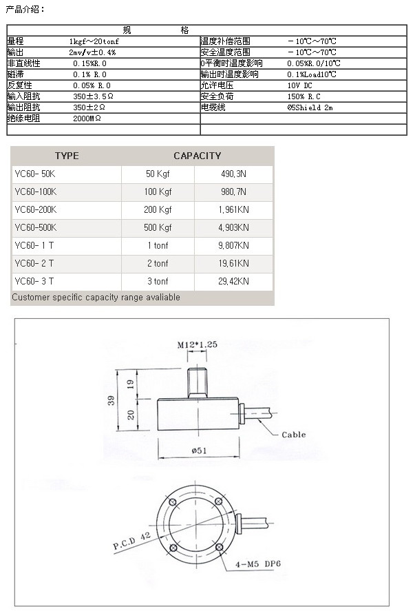 YC60-50K,YC60-100K,YC60-200K,YC60-500K,YC60-1T,YC60-2T,YC60-3T,setech稱重傳感器