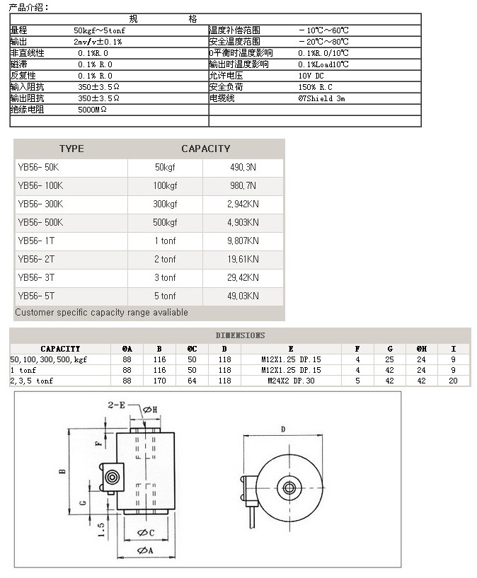 YB56-50K,YB56-100K,YB56-300K,YB56-500K,YB56-1T,YB56-2T,setech稱重傳感器 |
