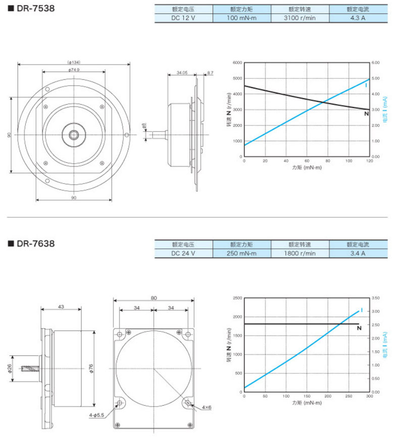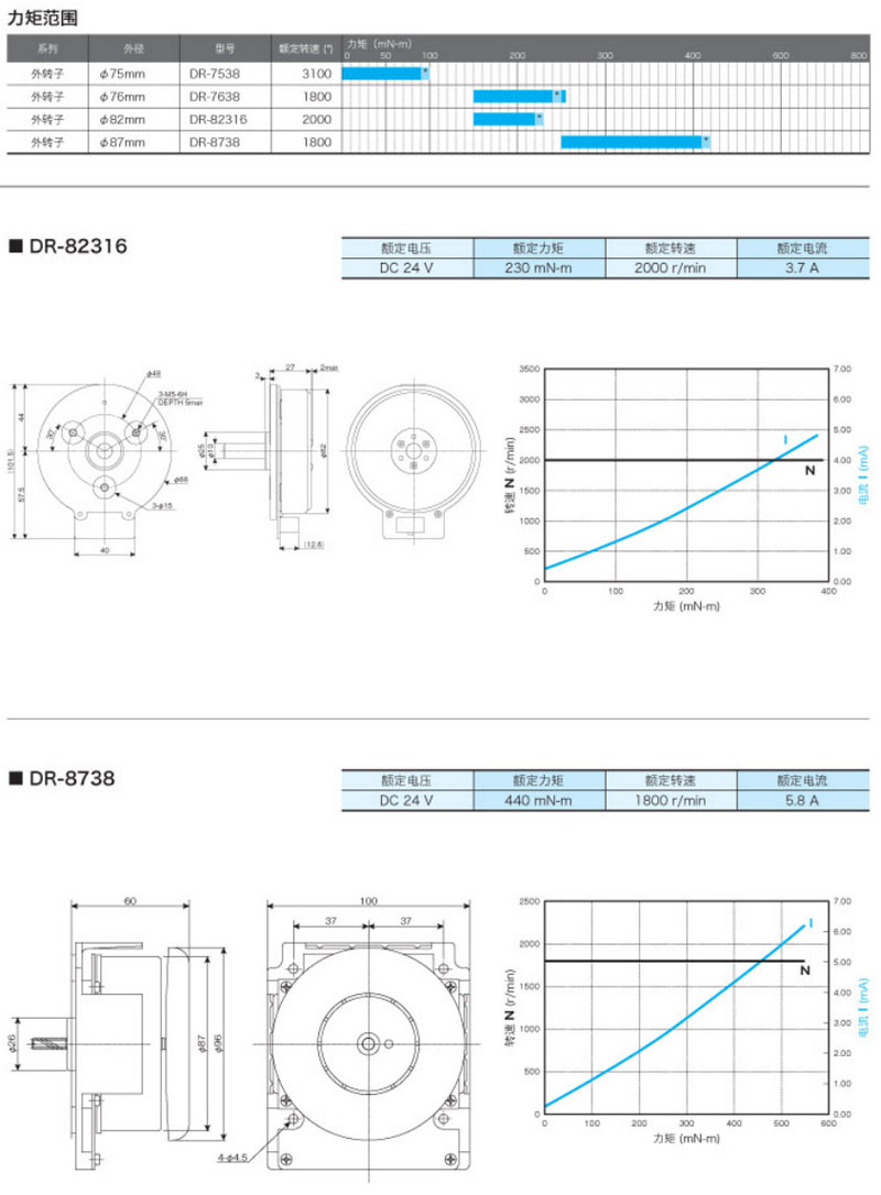 DR-7538,DR-7638,DR-82316,DR-8738,外轉(zhuǎn)子直流無刷馬達(dá)
