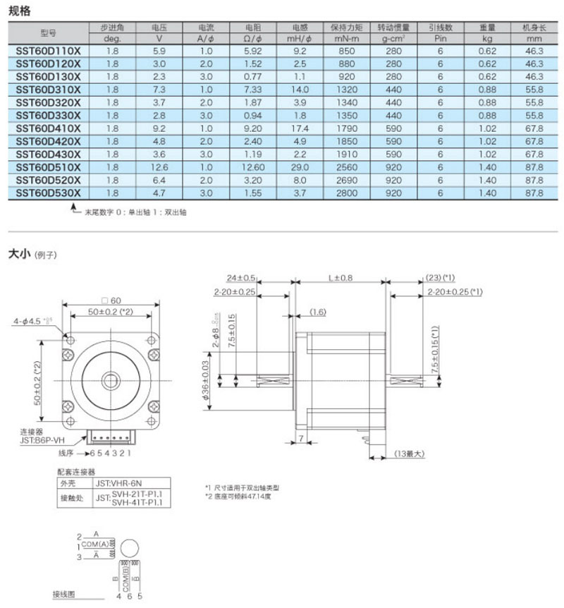 SST60D110X,SST60D120X,SST60D130X,SST60D310X,SST60D320X,兩相混合步進(jìn)馬達(dá)