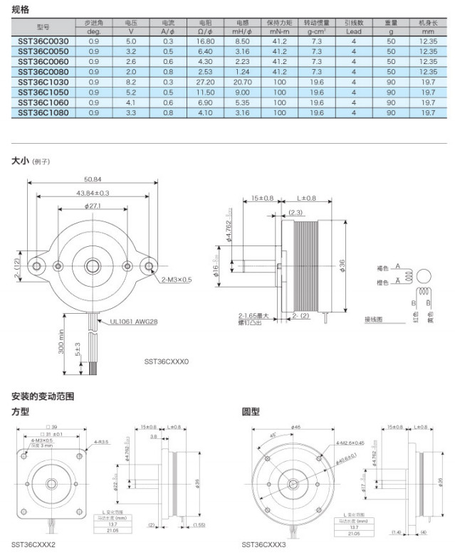 SST36C0030,SST36C0050,SST36C0060,SST36C0080,SST36C1030,兩相混合步進(jìn)馬達(dá)