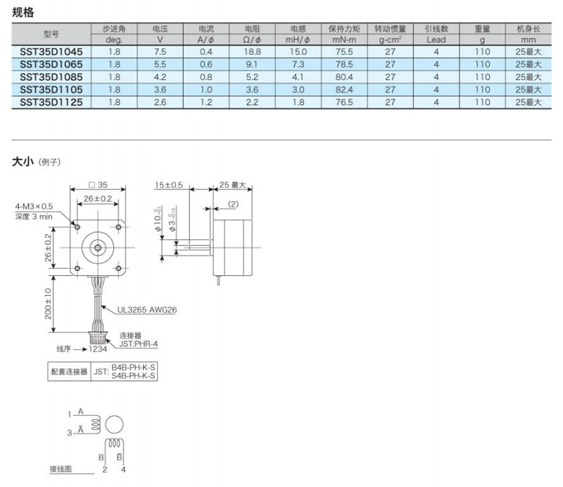 SST35D1045,SST35D1065,SST35D1085,SST35D1105,SST35D1125,兩相混合步進馬達 |