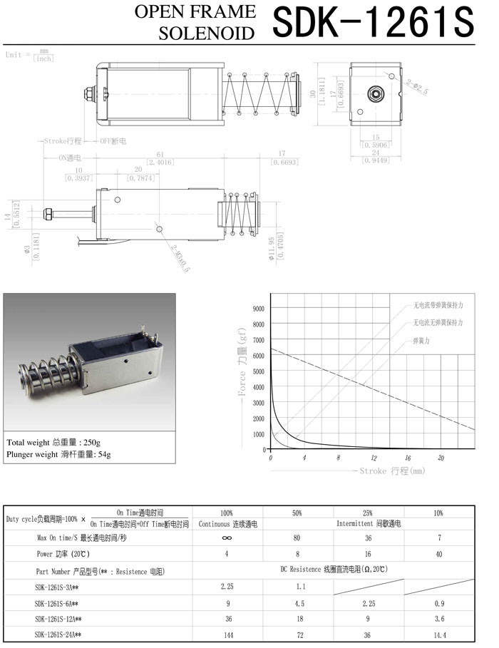 直動電磁鐵 SDK-1261S-3A,SDK-1261S-6A,SDK-1261S-12A,SDK-1261S-24A, |