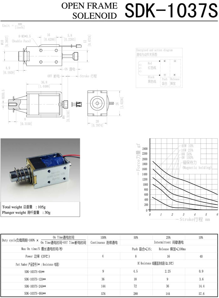 SDK-1037S-6A,SDK-1037S-12A,SDK-1037S-24A,SDK-1037S-48A,直動電磁鐵
