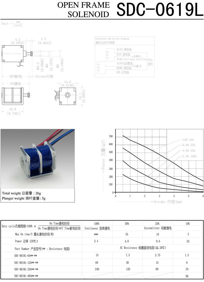 SDO-0619L-6A,SDO-0619L-12A,SDO-0619L-24A,SDO-0619L-48A,直動電磁鐵
