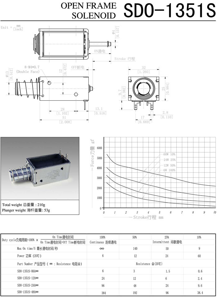 SDO-1351S-06A,SDO-1351S-12A,SDO-1351S-24A,SDO-1351S-48A,直動電磁鐵 |