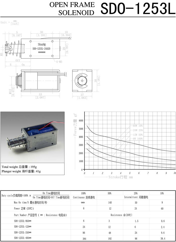 SDO-1253L-06A,SDO-1253L-12A,SDO-1253L-24A,SDO-1253L-48A,直動電磁鐵