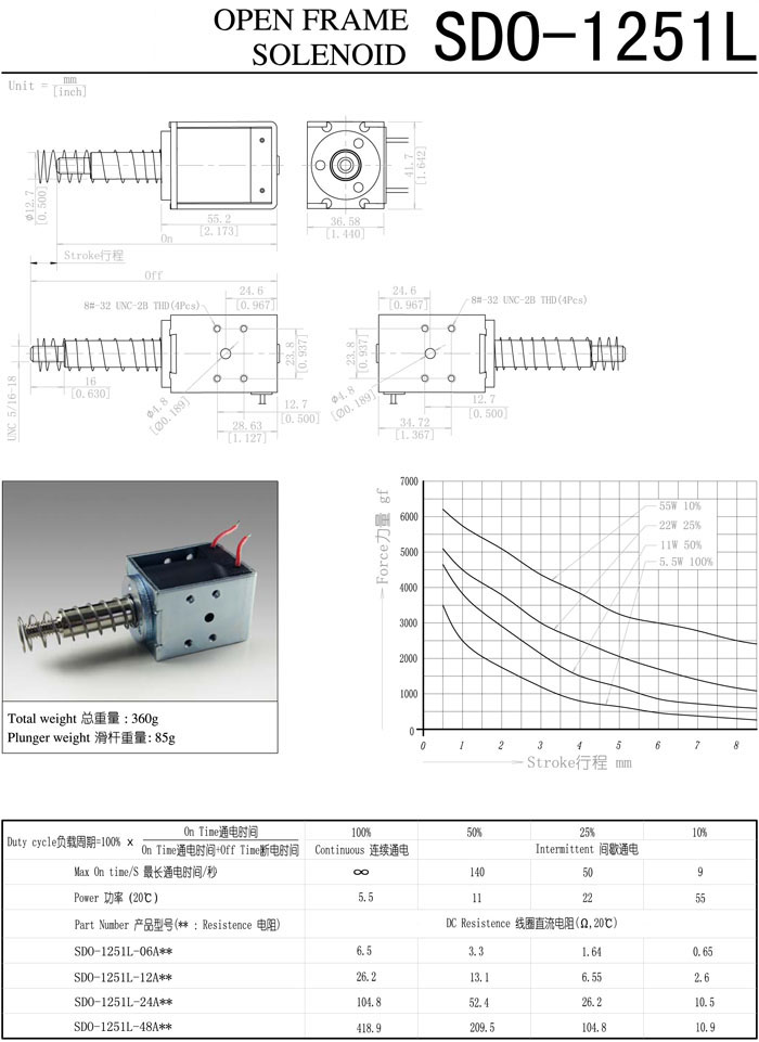 SDO-1251L-06A,SDO-1251L-12A,SDO-1251L-24A,SDO-1251L-48A,直動電磁鐵 |