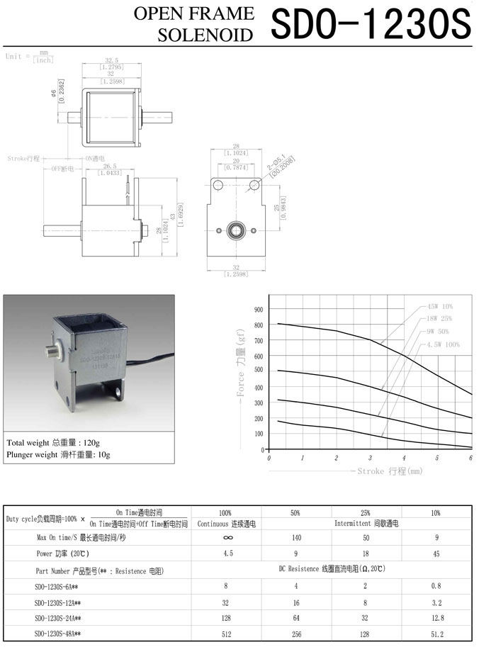 SDO-1230S-6A,SDO-1230S-12A,SDO-1230S-24A,SDO-1230S-48A,直動電磁鐵 |