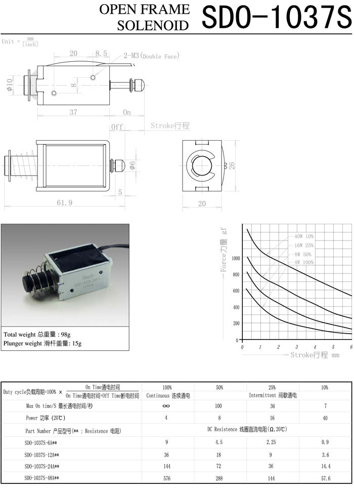 SDO-1037S-6A,SDO-1037S-12A,SDO-1037S-24A,SDO-1037S-48A,直動電磁鐵 |