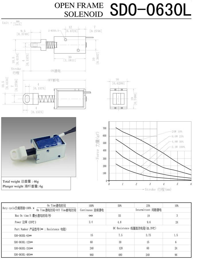 SDO-0630L-6A,SDO-0630L-12A,SDO-0630L-24A,SDO-0630L-48A,直動(dòng)電磁鐵
