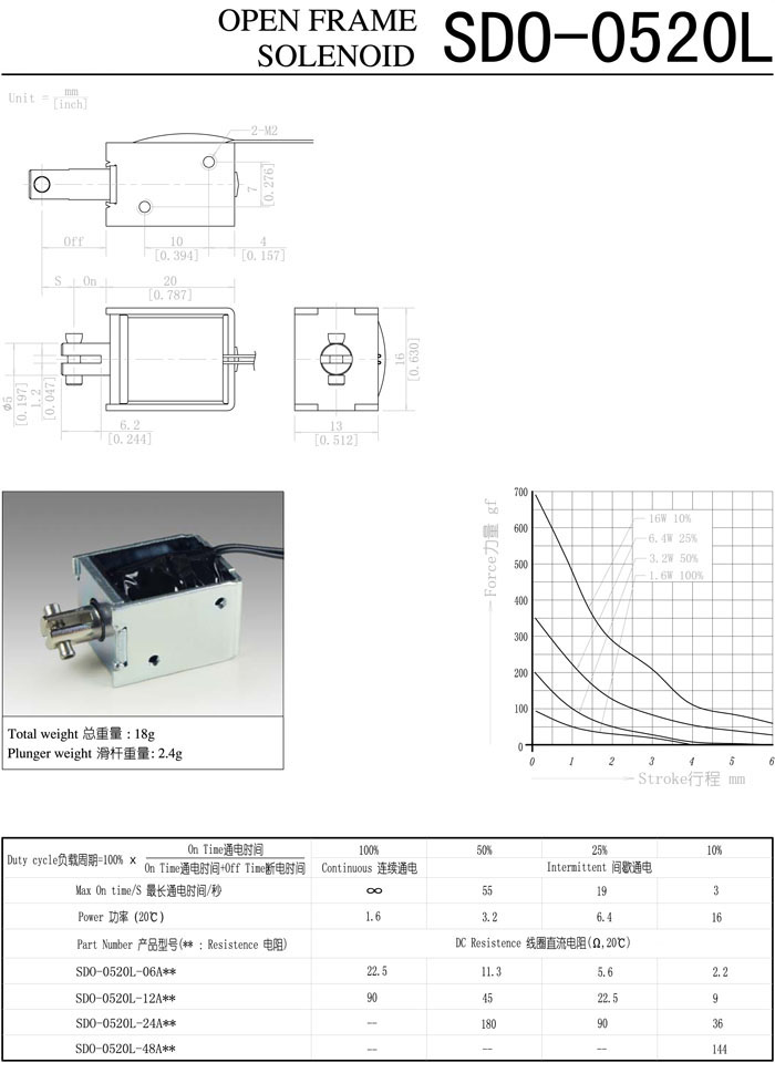 SDO-0520L-06A,SDO-0520L-12A,SDO-0520L-24A,SDO-0520L-48A,直動電磁鐵