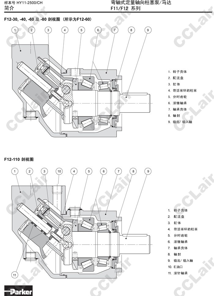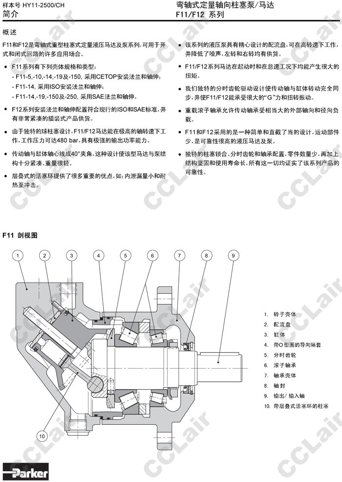 F11-005,F11-010,F11-014,F11-019,F11-150,F11-010-GL-CV-D,F11-150-MF-CN-K,Parker彎軸式定量軸向柱塞泵 |