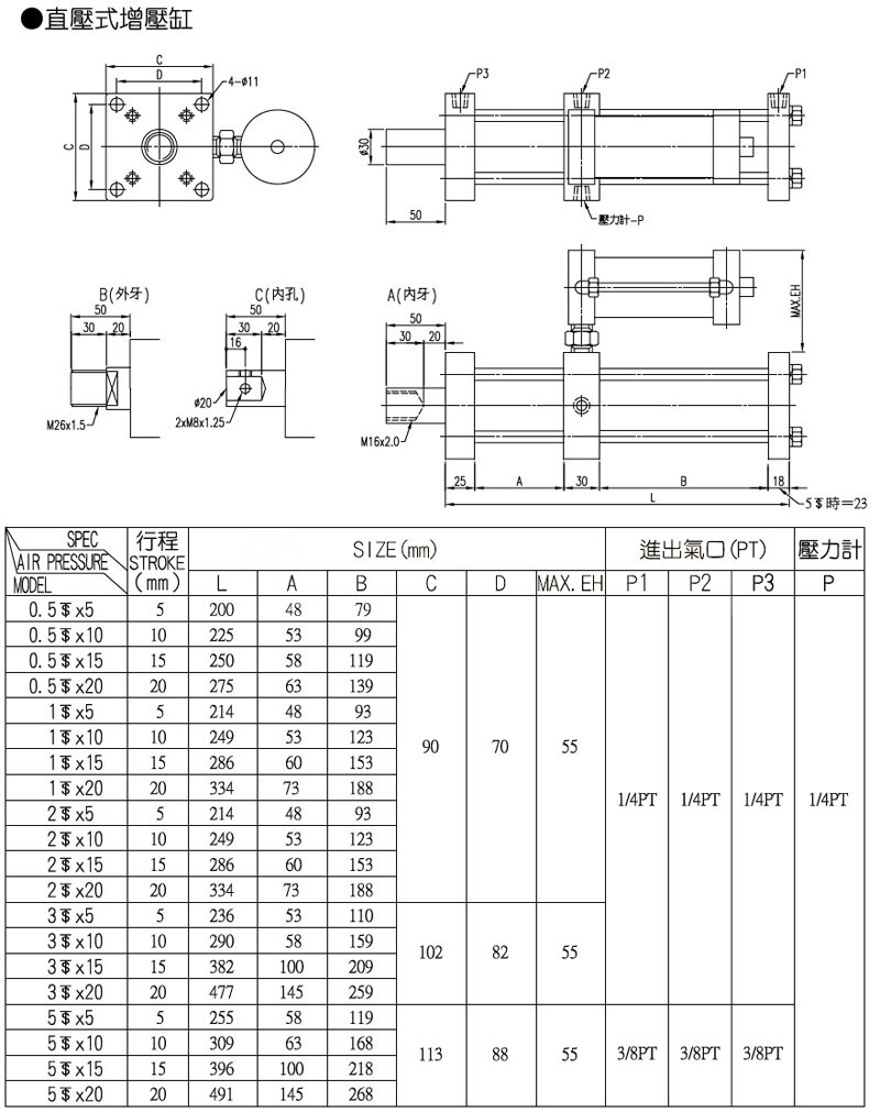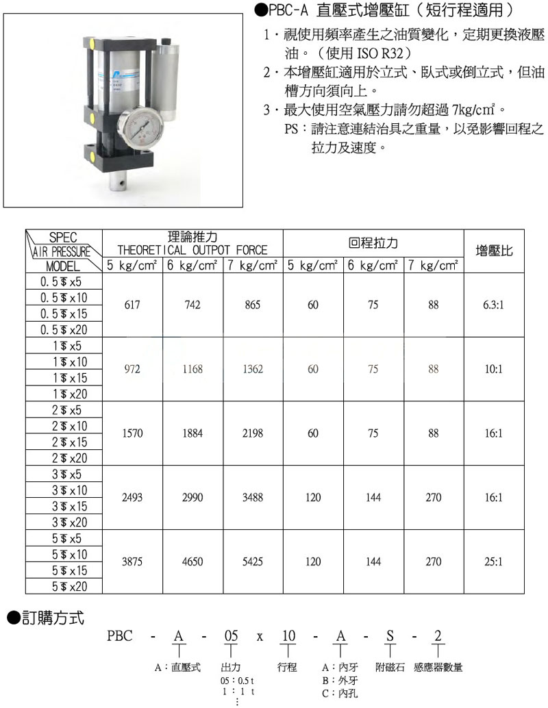 PBC-A-0.5,PBC-A-1,PBC-A-2,PBC-A-3,PBC-A-5,panix增壓缸