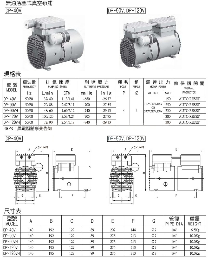 DP-40V,DP-90V,DP-90VH,DP-120V,DP-120VH,panix真空泵
