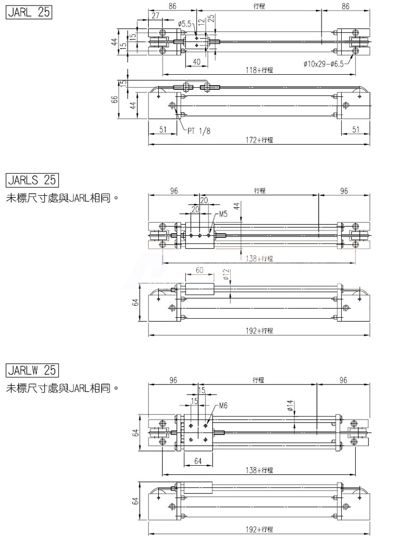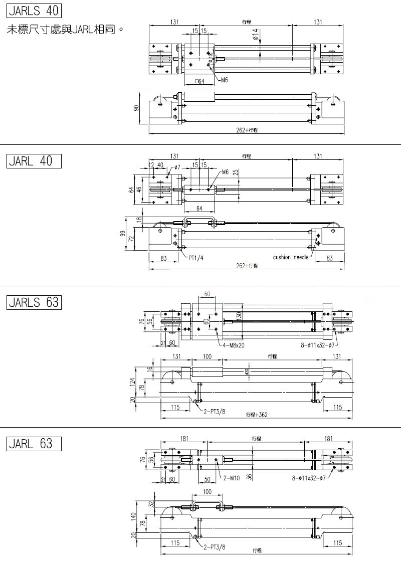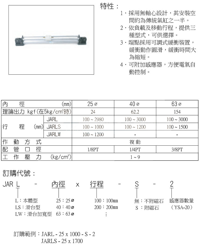 JARL-25,JARL-40,JARLS-25,JARLS-40,JARLW-25,JARLW-40,panix纜繩式無桿氣缸