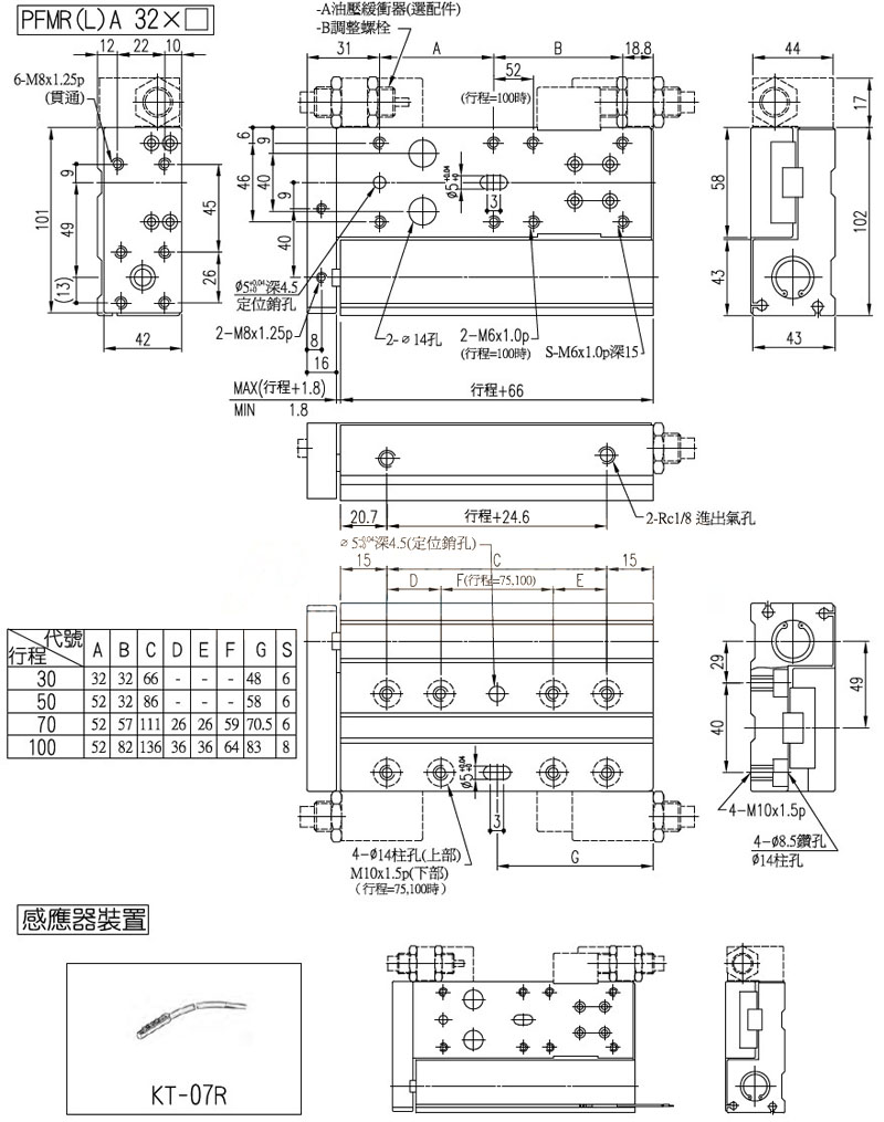 PFMRA-10,PFMRA-16,PFMRA-20,PFMRA-25,PFMRA-32,panix精巧型滑軌氣壓缸 |