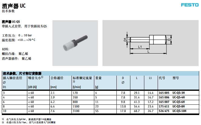 UC-QS-3H,UC-QS-4H,UC-QS-6H,UC-QS-8H,UC-QS-10H,festo消聲器
