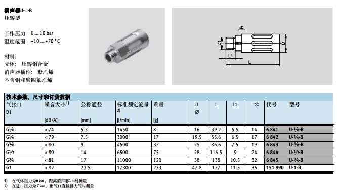 U-1/8-B,U-1/4-B,U-3/8-B,U-1/2-B,U-3/4-B,U-1-B,festo消聲器