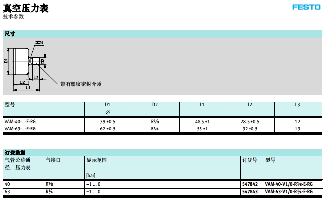 VAM-40-V1/0-R1/8-E-RG,VAM-63-V1/0-R1/4-E-RG,festo真空壓力表