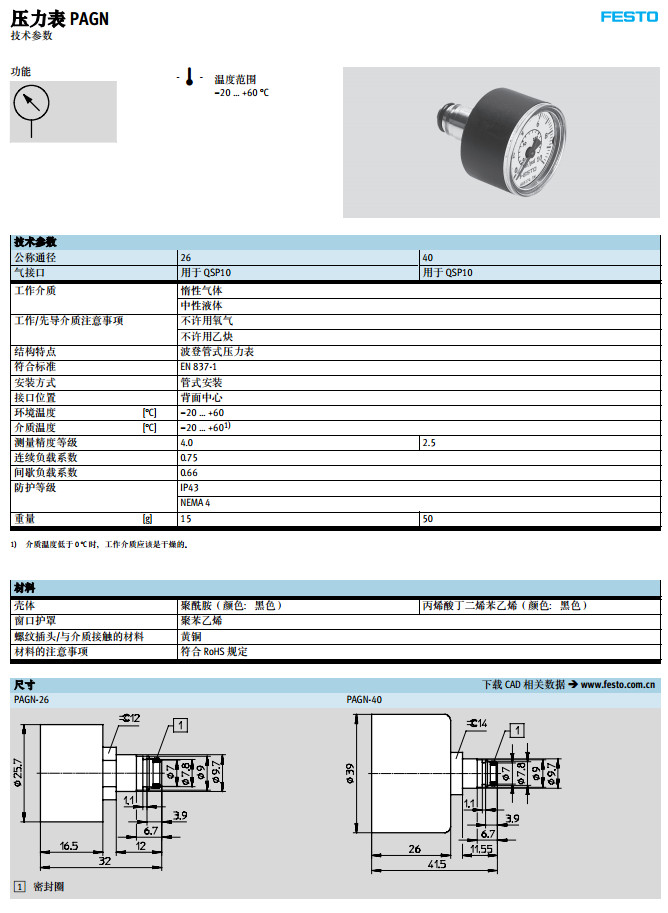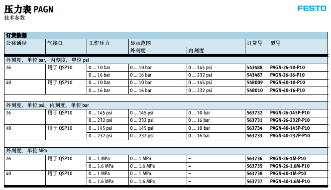 PAGN-26-10,PAGN-40-16,PAGN-40-145P,PAGN-26-232P,festo壓力表