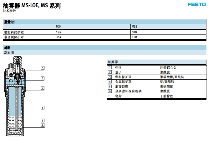 MS4-LOE-1/8,MS6-LOE-1/8,MS4-LOE-3/8,MS6-LOE-3/8,festo油霧器