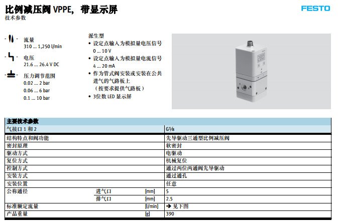 VPPE-3-1/8-6-010,VPPE-3-1/8-2-010,VPPE-3-1/8-10-010,festo比例壓力閥 |