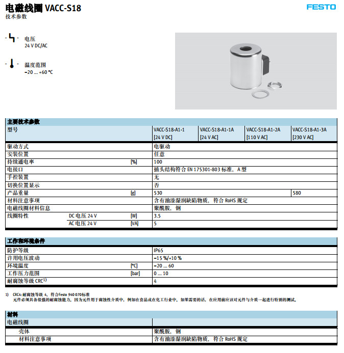 VACC-S18-A1-1,VACC-S18-A1-2A,VACC-S18-A1-3A,VACC-S18-A1-1A,festo電磁線圈