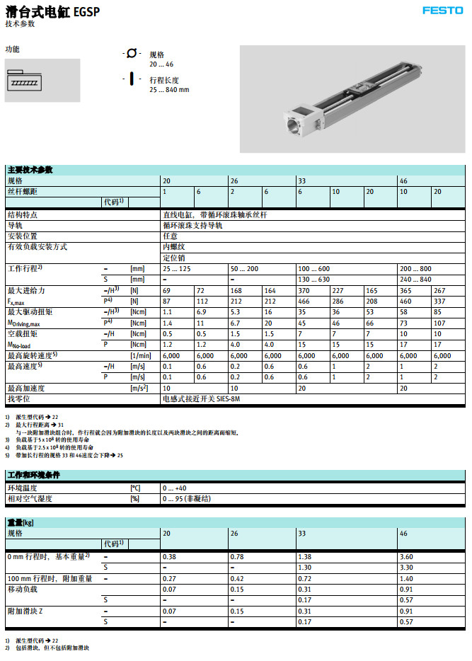 EGSP-20-150,EGSP-26-150,EGSP-33-150,EGSP-46-150,festo滑臺式電缸 |