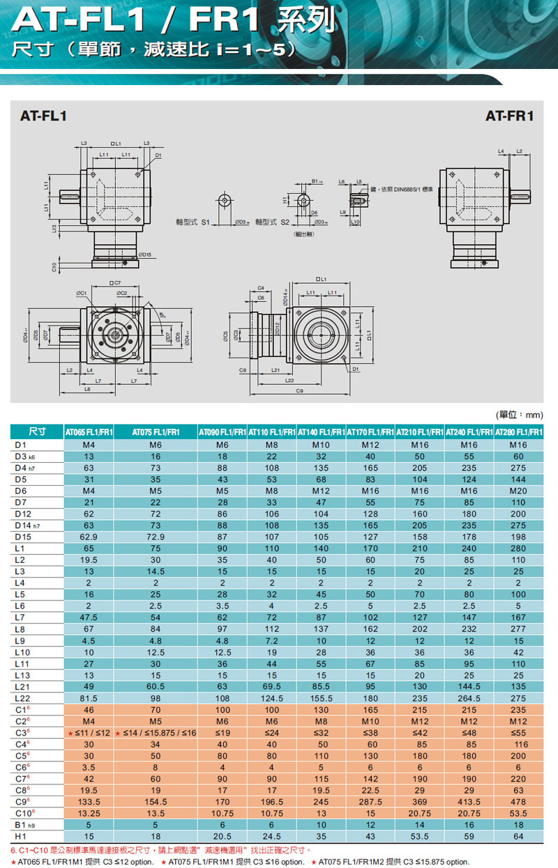 AT065-FL1,AT075-FL1,AT090-FL1,AT210-FR1,AT240-FR1,AT280-FR1,伺服專用減速機