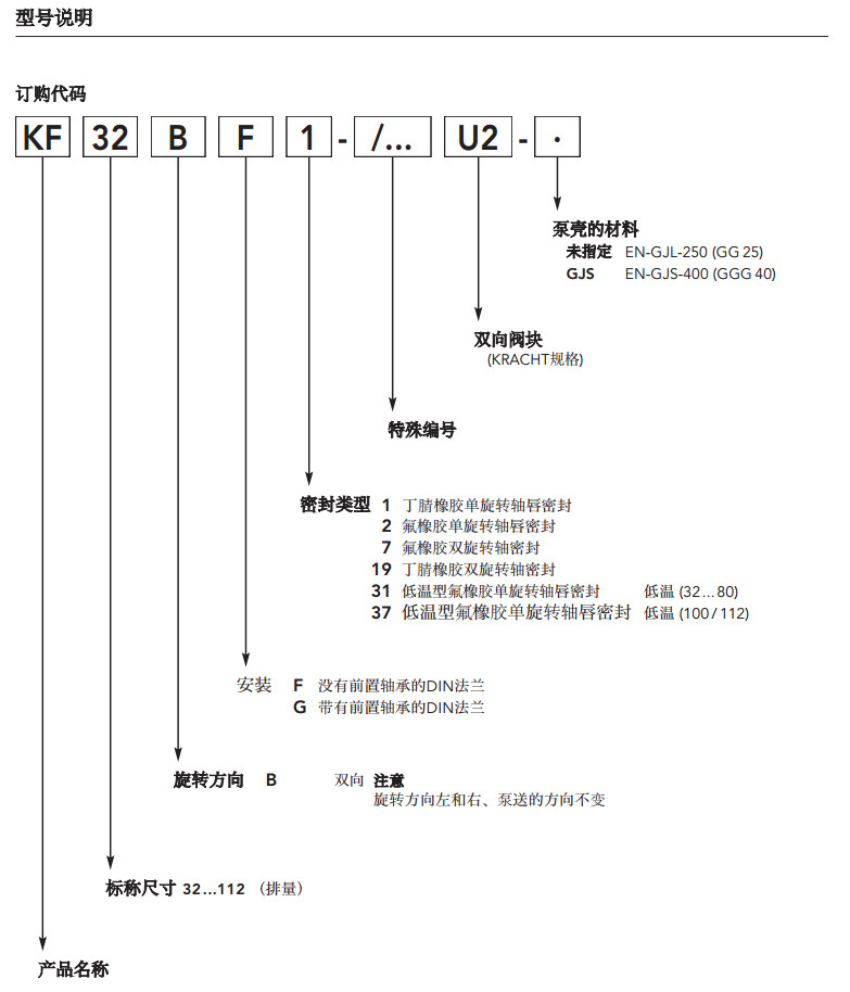 規(guī)格: KF32BF1,KF40BG1,KF50BF2,KF63BG2,KF80BF7,KF100BG7, kracht齒輪輸送泵