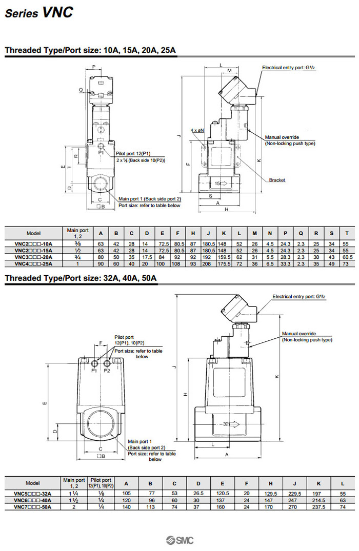 VNC402B-25A,VNC404B-25A,VNC502B-32A,VNC504B-32A,VNC501B-32F,VNC502B-32F,VNC504B-32F,VNC602B-40A,VNC604B-40A,