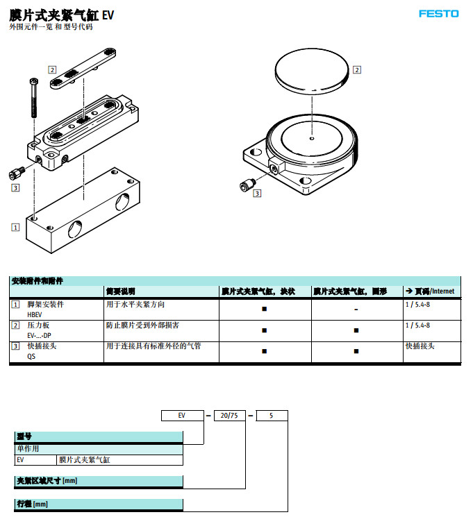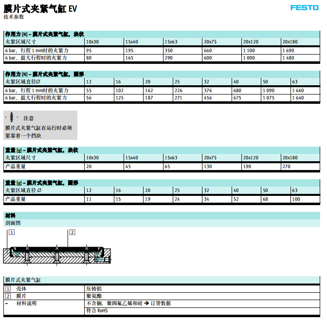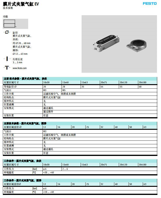 EV-10*30,EV-15*40,EV-15*63,EV-20*75,EV-12,EV-20,EV-32,EV-40,festo膜片式夾緊氣缸