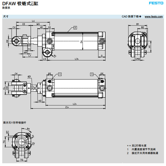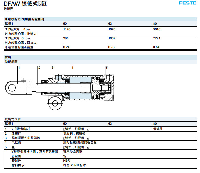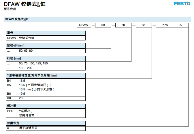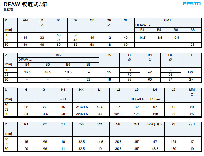 DFAW-50-50,DFAW-63-75,DFAW-80-100-B4-PPS-A,festo鉸鏈式氣缸