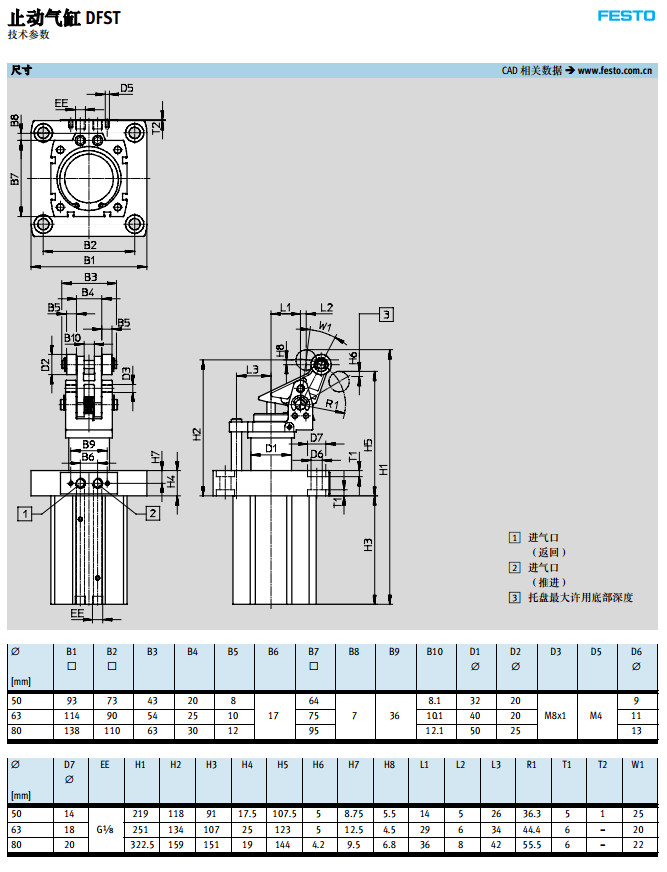DFST-50-30-DL,DFST-63-30-DL,DFST-80-40-DL,festo止動氣缸 |