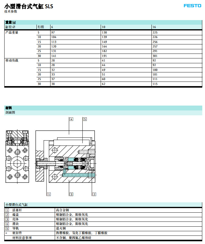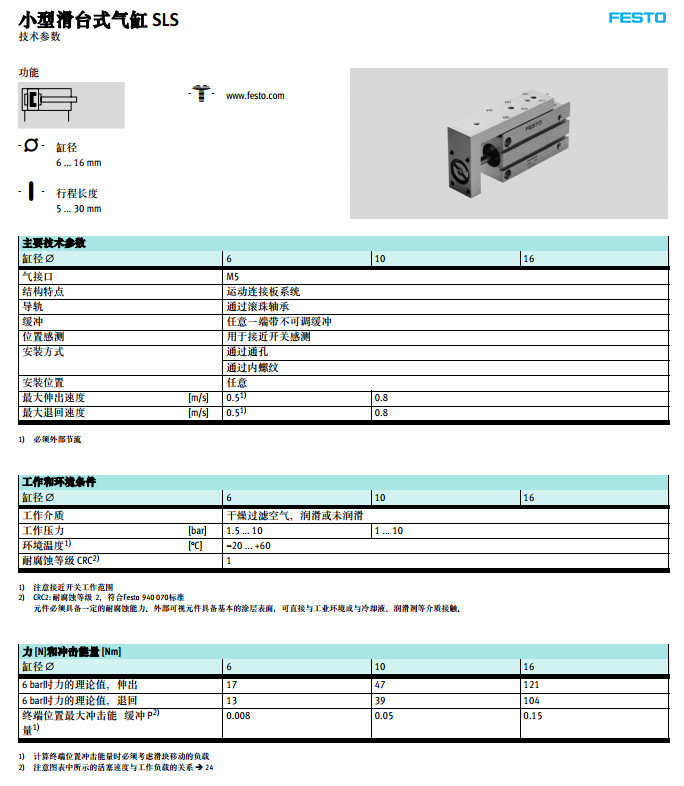 SLS-6-5,SLS-10-5,SLS-16-5,SLS-6-10,SLS-10-10,SLS-16-10,festo小型滑臺(tái)式氣缸