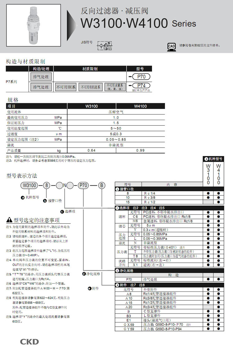 W3100-8,W3100-10,W4100-8,W4100-10,W4100-15,CKD過(guò)濾減壓閥