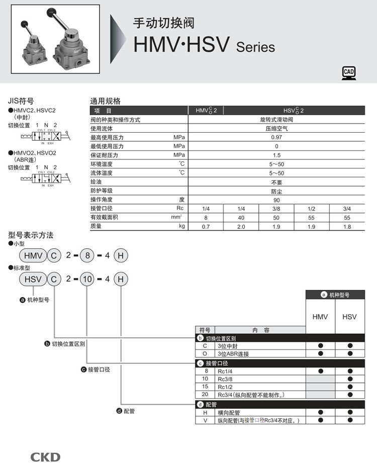 HMVC2-8-4H,HMVO2-8-4H,HSVC2-8-4H,HSVC2-8-4V,HSVC2-10-4H,HSVC2-10-4V,CKD手動切換閥