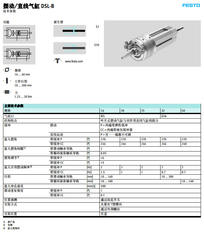 DSL-16,DSL-20,DSL-25,DSL-32,DSL-40,festo擺動(dòng)氣缸