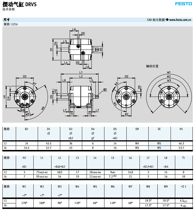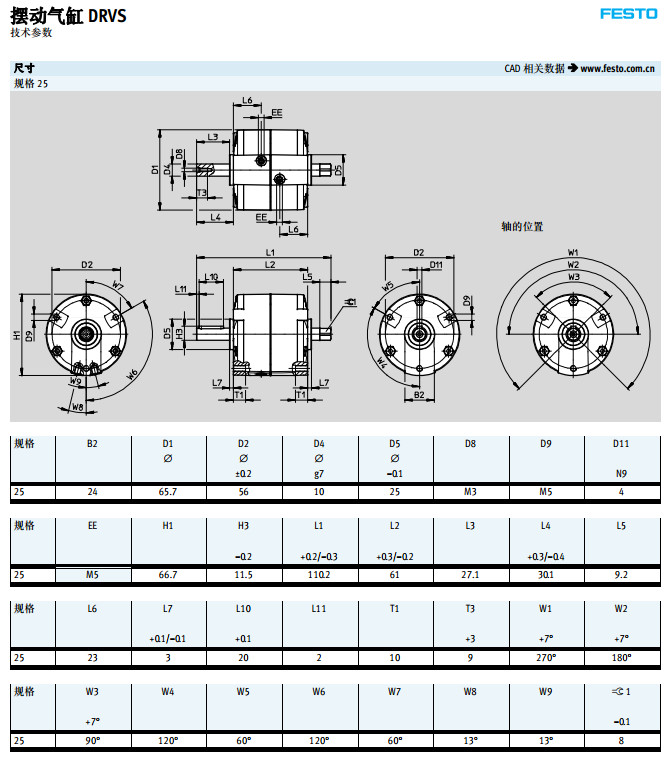 DRVS-6,DRVS-8,DRVS-12,DRVS-16,DRVS-25,DRVS-32,DRVS-40,festo擺動(dòng)氣缸