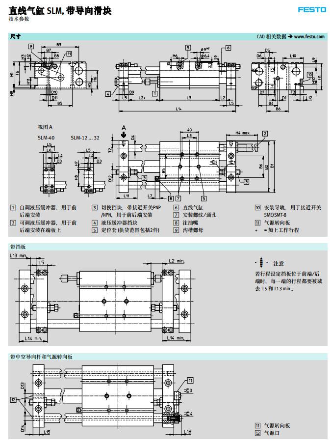 SLM-12,SLM-16,SLM-20,SLM-25,SLM-32,SLM-40,festo直線氣缸