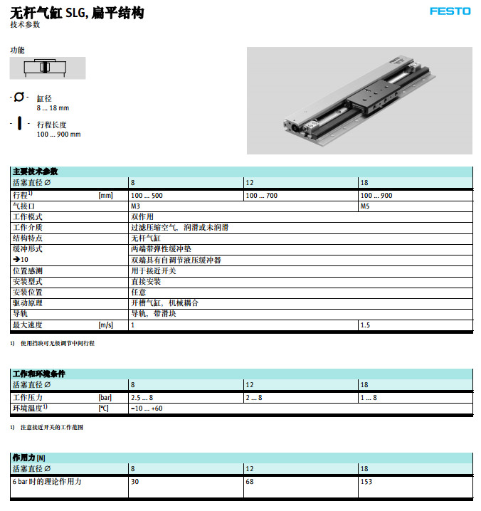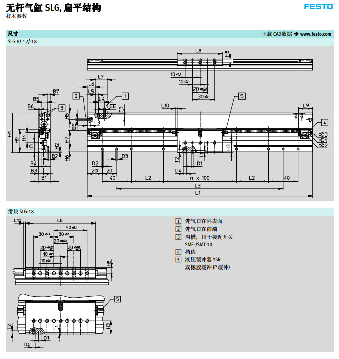 SLG-8-500-P-A,SLG-12-500-P-A,SLG-18-500-YSR-A,festo無桿氣缸
