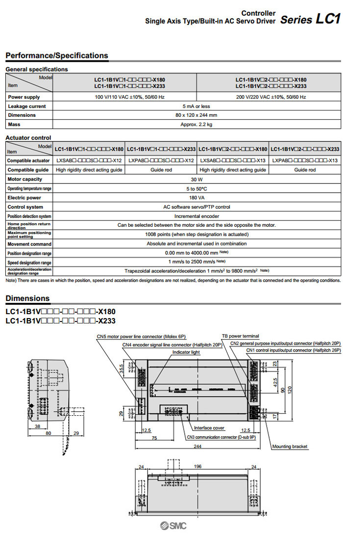 LC1-11B1VC1-N3,LC1-11B1VC2-N3,LC1-11B1VD1-N3,LC1-11B1VD2-N3,SMC伺服電機用控制器