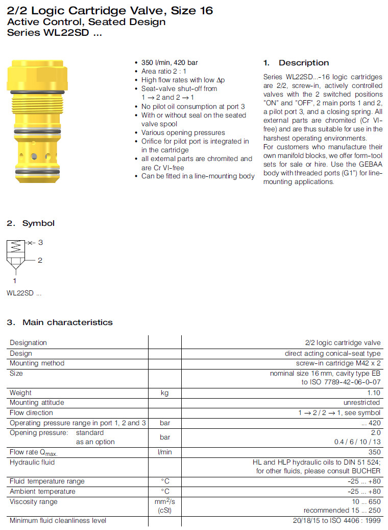 WL22SD2D13A-16-1,WL22SD2D63A-16-1,WL22SD2D36A-16-1,WL22SD2D33A-16V-1,Bucher邏輯閥
